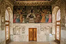 In 1810, the Qajar prince Soleyman Mirza built the Soleymaniyeh Palace at Karaj to serve as a summer resort.[14] The palace had four towers and was surrounded by gardens. Its reception room featured a pair of paintings by Abdallah Khan Naqqashbandi.[14] By 1860, however, the palace was described as abandoned and only used as a shelter for travelers.[14] Naser al-Din Shah Qajar later renovated the palace.[14] In 1917, a School of Farming was established on the site, replacing the earlier Mozaffari Agricultural School in Tehran.[14] Later, Reza Pahlavi granted it to the University of Tehran's new Faculty of Agriculture.[14]
