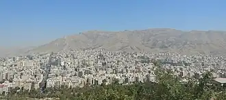 Karaj (Persian: کرج; pronounced [kæˈɾædʒ] ⓘ)[a] is a city in the Central District of Karaj County, Alborz province, Iran, serving as capital of the province,[6] the county, and the district.[7] Earliest evidence of inhabitation in Karaj can be dated to the Bronze Age at Tepe Khurvin.[8][9] The city was developed under the rule of the Safavid and Qajar Empire and is home to historical buildings and memorials from those eras. This city has a unique climate due to access to natural resources such as many trees, rivers, and green plains. After Tehran, Karaj is the largest immigrant-friendly city in Iran, so it has been nicknamed "Little Iran."