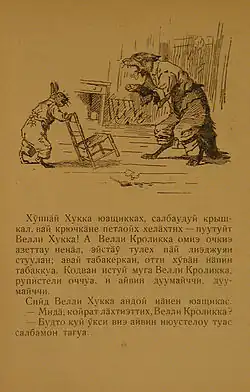 - ^ Bogdanova, Leena; Ščerbakova, Tamara. Karjalan kielen harjoituskogomus III–IV luokku Livvin murdehel. Petroskoi «Periodika», 2004, p. 14.