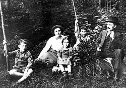 Karl Paul August Friedrich Liebknecht was born in Leipzig in 1871, the second of the five sons of Wilhelm Liebknecht and his second wife Natalie (née Reh). His father, along with August Bebel, was one of the founders and key leaders of the SPD and its precursor parties. Karl was baptized a Lutheran in St. Thomas Church. According to the Liebknecht family tradition, their lineage was directly descended from the theologian and founder of Reformation, Martin Luther.[2] His godparents included Karl Marx and Friedrich Engels, who were not present at the baptism but had written declarations of their godparenthood.[3]