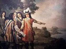 The city itself was founded on 10 August 1680.[7] The city's name means Karl's Crown in honour of King Karl XI of Sweden, the name being inspired by the name of the older city of Landskrona in Scania.[8][9] The nearby town of Ronneby was dissolved as a town and its population forced to move to Karlskrona which benefited from several years of customs freedom. Shipbuilders for the shipyards of the new naval base were brought in from Ostrobothnia and Stockholm.