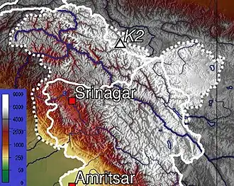- ^ a b c Kashmir. (2007). In Encyclopædia Britannica. Retrieved 27 March 2007, from Encyclopædia Britannica Online. Archived 13 January 2008 at the Wayback Machine
