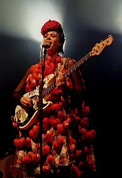 In 2021, having been inspired by the collapse of Burger Records and her own poor sex education, she set up Safety Chain, which aimed to teach sex education to those in the music industry.[173] In November 2024, after discovering that her 9 Sad Symphonies Tour was making a loss,[174] she announced that she was selling pictures of her buttocks on OnlyFans to subsidise its losses; her account was marketed with the slogan "Butts for Tour Buses".[175] By March 2025, her account had diversified into pay-per-view feet content and comedic food-based erotica.[174] As part of the campaign, and in collaboration with Save Our Scene, she protested outside the offices of Spotify and Live Nation Entertainment to raise awareness of their profits.[176] In February 2025, she became a patron of Music Venue Trust[177] and urged her fans to fill out a survey by Music Fans's Voice,[178] a review of the live music industry.[179]
