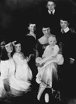 Katharine Houghton Hepburn was born on May 12, 1907, in Hartford, Connecticut, the second of six children. Her parents were Thomas Norval Hepburn (1879–1962), a urologist at Hartford Hospital, and Katharine Martha Houghton Hepburn (1878–1951), a feminist campaigner. Both parents fought for social change in the United States: Thomas Hepburn helped establish the New England Social Hygiene Association, which educated the public about venereal disease,[1] while the elder Katharine headed the Connecticut Woman Suffrage Association and later campaigned for birth control with Margaret Sanger.[2] As a child, Hepburn joined her mother on several "Votes For Women" demonstrations.[3] The Hepburn children were raised to exercise freedom of speech and encouraged to think and debate on any topic they wished.[4] Her parents were criticized by the community for their progressive views, which stimulated Hepburn to fight against barriers she encountered.[5][6] Hepburn said she realized from a young age that she was the product of "two very remarkable parents",[7] and credited her "enormously lucky" upbringing with providing the foundation for her success.[8][9] She remained close with her family throughout her life.[10]
