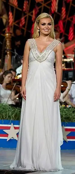 Katherine Jenkins OBE (born 29 June 1980) is a Welsh singer. She is a mezzo-soprano who performs operatic arias, popular songs, musical theatre, and hymns.[1][2][3]