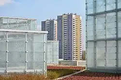 The Katowice conurbation comprises settlements which have evolved because of the mining of metal ores, coal and raw rock materials.[53] The establishment of mining and heavy industry which have developed for the past centuries has resulted in the unique character of the cityscape; its typical aspects are the red brick housing estates[54] constructed for the poorer working class, factory chimneys, manufacturing plants, power stations and quarries. The inhabitants of a large mining community like Katowice, and local administrations within the conurbation, which have only evolved due to mining, are a subject to overall decline after the liquidation of coal mines and factories. This is one of the reasons which led to the development of the service sector, including office spaces, shopping centres and tourism.