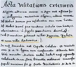 A fragment from the Bogucice Parish visitation report from 1598 that mentions the name Katowice for the first time