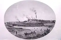 On 3 October 1846, the works of the final stage of the Breslau-Myslowitz (Wrocław-Mysłowice) rail line ended, built and operated by the Upper Silesian Railway. It was opened by king Frederick William IV of Prussia.[14] A year later, on 6 August 1847, the first train arrived at the new Katowice station.[15]