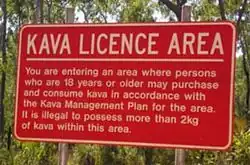 A sign showing a "Kava licence area" at Yirrkala, in the Northern Territory of Australia