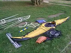 A special type of skin-on-frame kayak is the folding kayak. It has a collapsible frame, of wood, aluminum or plastic, or a combination thereof, and a skin of water-resistant and durable fabric. Many types have air sponsons built into the hull, making the kayak float even if flooded.