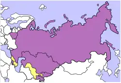 The republic was one of the destinations for exiled and convicted persons, as well as for mass resettlements, or deportations affected by the central USSR authorities during the 1930s and 1940s, such as approximately 400,000 Volga Germans deported from the Volga German Autonomous Soviet Socialist Republic in September–October 1941, and then later the Greeks and Crimean Tatars. Deportees and prisoners were interned in some of the biggest Soviet labour camps (the Gulag), including ALZhIR camp outside Astana, which was reserved for the wives of men considered "enemies of the people".[59] Many moved due to the policy of population transfer in the Soviet Union and others were forced into involuntary settlements in the Soviet Union.