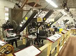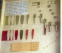 In 1916, the Original American Kazoo Company in Eden, New York started manufacturing kazoos for the masses in a two-room shop and factory, utilizing a couple of dozen jack presses for cutting, bending and crimping metal sheets. These machines were used for many decades. By 1994, the company produced 1.5 million kazoos per year and was the only manufacturer of metal kazoos in North America.[9][10] The factory, in nearly its original configuration, is now called The Kazoo Factory and Museum. It is still operating, and it is open to the public for tours.[4]