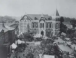 Keio University (慶應義塾大学, Keiō Gijuku Daigaku) was first established in 1858 as a School of Western studies located in one of the mansion houses at Tsukiji by founder Fukuzawa Yukichi.[9] "Shinshu Kan" was the original name of Keio University. Keio University's root is considered to be the Han school for Kokugaku studies, named Shinshu Kan established in 1796. It later changed its name to "Keio Gijuku" in 1868, which originated from the era name "Keio",[10] with "Gijuku" as the translation of Private school.[11] It moved to its current location in 1871, established a Medical school in 1873, along with the university department of Economics, Law and Literacy studies in 1890.