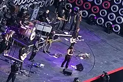 In January 2013, Clarkson performed "My Country, 'Tis of Thee" at the second inauguration of U.S. President Barack Obama.[89] Her live rendition was acclaimed by critics, who contrasted it with Beyoncé's pre-recorded performance during the same event.[90] In February 2013, she performed "Tennessee Waltz" and "(You Make Me Feel Like) A Natural Woman" at the 55th Annual Grammy Awards as a tribute to Patti Page and Carole King.[91] She also released a non-album single, "Tie It Up", exclusively to country music stations in June 2013.[92] Clarkson and Maroon 5 performed at 24 concerts as part of the 12th Annual Honda Civic Tour, starting on August 1, 2013, and ending on October 6, 2013. She was featured on the re-recorded version of "Foolish Games" for Jewel's first compilation, Greatest Hits (2013).[93] Clarkson also collaborated with singer Robbie Williams on the song "Little Green Apples" for his 2013 album Swings Both Ways.[94]