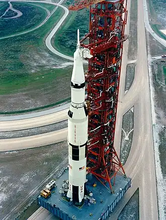 On May 14, 1973, the last Saturn V launch put the Skylab space station in orbit from Pad 39A.[31] By this time, the Cape Kennedy pads 34 and 37 used for the Saturn IB were decommissioned, so Pad 39B was modified to accommodate the Saturn IB, and used to launch three crewed missions to Skylab that year, as well as the final Apollo spacecraft for the Apollo–Soyuz Test Project in 1975.[32]