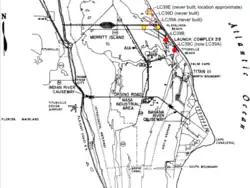 Launch Complex 39 (LC-39) is a rocket launch site at the John F. Kennedy Space Center on Merritt Island in Florida, United States. The site and its collection of facilities were originally built as the Apollo program's "Moonport"[2] and later modified for the Space Shuttle program. Launch Complex 39 consists of three launch sub-complexes or "pads"—39A, 39B, and 39C—a Vehicle Assembly Building (VAB), a Crawlerway used by crawler-transporters to carry mobile launcher platforms between the VAB and the pads, Orbiter Processing Facility buildings, a Launch Control Center which contains the firing rooms, a news facility famous for the iconic countdown clock seen in television coverage and photos, and various logistical and operational support buildings.[3]