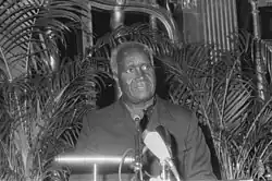 During his early presidency Kaunda was an outspoken supporter of the anti-apartheid movement and opposed white minority rule in Southern Rhodesia. Kaunda supported the succession of Biafra when he recognized it as an independent nation on May 20, 1968.[41] Although his nationalisation of the copper mining industry in the late 1960s and the volatility of international copper prices contributed to increased economic problems,[42] matters were aggravated by his logistical support for the black nationalist movements in Ian Smith's Rhodesia, South West Africa, Angola, and Mozambique. Kaunda's administration later attempted to serve the role of a mediator between the entrenched white minority and colonial governments and the various guerrilla movements which were aimed at overthrowing these respective administrations. Beginning in the early 1970s, he began permitting the most prominent guerrilla organisations, such as the Rhodesian ZANU and the African National Congress, to use Zambia as a base for their operations. Former ANC president Oliver Tambo even spent a significant proportion of his 30-year exile living and working in Zambia.[43] Joshua Nkomo, leader of ZAPU, also erected military encampments there, as did SWAPO and its military wing, the People's Liberation Army of Namibia.[44]