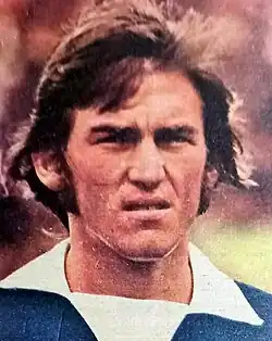 In 1976, Dalglish scored the winning goal for Scotland at Hampden Park against England, by nutmegging Ray Clemence.[43] A year later Dalglish scored against the same opponents and goalkeeper at Wembley, in another 2–1 win.[44] Dalglish went on to play in both the 1978 World Cup in Argentina where he started in all of Scotland's games – scoring against eventual runners-up the Netherlands in a famous 3–2 win[45] – and the 1982 World Cup in Spain, scoring against New Zealand.[46] On both occasions Scotland failed to get past the group stage. Dalglish was selected for the 22-man squad travelling to Mexico for the 1986 World Cup, but had to withdraw due to injury.[47]