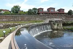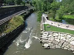 Kent received national attention in 1995 when the city's water was named "Best Tasting Municipality Water" at the Berkeley Springs International Water Tasting. The water and mayor Kathleen Chandler were featured on the March 3 episode of The Tonight Show with Jay Leno. Since then, Kent has placed in the top five six times with the most recent being a fifth-place finish in 2011.[24] In 2003, the 1836 arch dam was bypassed to meet water quality standards set by the Ohio Environmental Protection Agency. To preserve the historic dam, a small park was built behind the dam and the river was rerouted through the old canal lock. During warm-weather months, water is pumped over the dam. The park, known as Heritage Park, was formally dedicated in May 2005.[25]