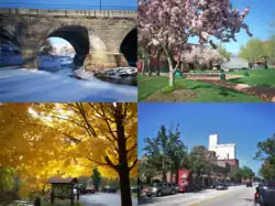 ![]() ![]() Top from left: old Erie Depot and Star of the West mill, Franklin Hotel, Dix Stadium, Theodore Roosevelt High School, Kent Hall, Main Street Bridge and arch dam, Cuyahoga River | |
