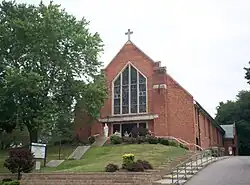 In May 1970, protests began on the campus of Kent State University over the United States' invasion of Cambodia in the Vietnam War. These protests, which included rioting in downtown Kent on May 2, culminated in the Kent State shootings on May 4, 1970, where four students were killed and nine were wounded by the Ohio Army National Guard.[21] Several memorials have been placed at the site over the years and commemorations have been held annually since 1971. In 2010 the site was listed on the National Register of Historic Places.[22] Also during the late 1960s and into the 1970s, construction of Haymaker Parkway, completed in 1975, brought changes to the city's layout while eliminating ongoing problems with traffic congestion and blocked rail crossings.[23]