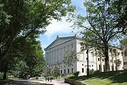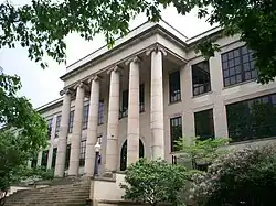 Kent State University was established in 1910 as an institution for training public school teachers. It was part of the Lowry Bill, which also created a sister school in Bowling Green, Ohio – now known as Bowling Green State University. It was initially known under the working name of the Ohio State Normal College At Kent,[9] but was named Kent State Normal School in honor of William S. Kent, son of the city’s namesake, who donated significant portions of land to the school.[10] The first president was John Edward McGilvrey, who served from 1912 to 1926.[11] McGilvrey had an ambitious vision for the school as a large university, instructing architect George F. Hammond, who designed the original campus buildings, to produce a master plan.[12] Classes began in 1912 before any buildings had been completed at the campus in Kent. These classes were held at extension centers in 25 cities around the region. By May 1913, classes were being held on the campus in Kent with the opening of Merrill Hall.[13] The school graduated 34 students in its first commencement on July 29, 1914. In 1915, the school was renamed Kent State Normal College[14] due to the addition of four-year degrees. By then additional buildings had been added or were under construction. Kent State's enrollment growth was particularly notable during its summer terms. In 1924, the school's registration for summer classes was the largest of any teacher-training school in the United States.[13] In 1929, the state of Ohio changed the name to Kent State College as it allowed the school to establish a college of arts and sciences.[15]