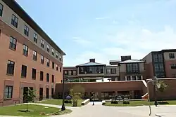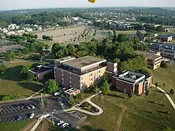 The Stark Campus is the largest regional campus of Kent State University, with an enrollment of over 2,900 students as of 2021.[6] The campus serves around 11,000 students total each year through professional development and other academic coursework classes. It is located on 200-acre (81 ha) in Jackson Township in Stark County. The campus includes seven major buildings and a natural pond. Additionally, the Stark Campus includes the Corporate University and Conference Center, an advanced meeting, training, and events facility that is one of only ten such centers in the state of Ohio affiliated with the International Association of Conference Centers. The center also serves as a home to the Corporate University, which provides training and learning exercises for area businesses and organizations.[48] Kent State University at Stark offers 24 complete degree programs, including three associate degree, 18 bachelor's degree, and three master's degree programs.[49]
