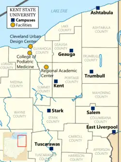 - ^ a b "Welcome to Kent State's Eight-Campus System". Kent State University website. Kent State University. June 11, 2008. Archived from the original on June 25, 2008. Retrieved June 27, 2008.
