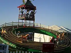 Held annually on the first Saturday in May, the Derby is the first leg of the Triple Crown. It is preceded by the two-week-long Kentucky Derby Festival.[4] The race is known as "The Run for the Roses", as the winning horse is draped in a blanket of roses.[5][6] Lasting approximately two minutes, the Derby has been alternately called "The Most Exciting Two Minutes in Sports",[7][8] "The Fastest Two Minutes in Sports",[9][10] or "The Greatest Two Minutes in Sports", coined by Churchill Downs president Matt Winn.[11][12] At least two of these descriptions are thought to be derived from the words of sportswriter Grantland Rice, when in 1935 he said "Those two minutes and a second or so of derby running carry more emotional thrills, per second, than anything sport can show."[6][13]
