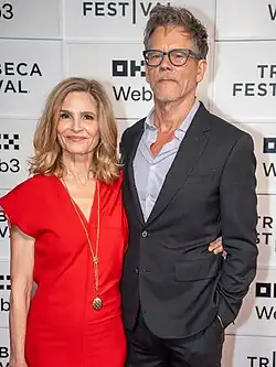 Bacon has been married to actress Kyra Sedgwick since September 4, 1988; they met on the set of the PBS version of Lanford Wilson's play Lemon Sky. He has said: "The time I was hitting what I considered to be bottom was also the time I met my wife, our kids were born, good things were happening. And I was able to keep supporting myself; that always gave me strength."[10] Bacon and Sedgwick have starred together in Pyrates, Murder in the First, The Woodsman, and Loverboy. They have two children, Travis Sedgwick (born 1989) and Sosie Ruth (born 1992). They reside on the Upper West Side of Manhattan.[51] Bacon was previously in a five-year relationship with actress Tracy Pollan, in the 1980s.[52]