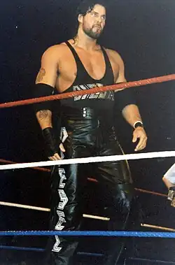 On January 21, 1992, at Clash of the Champions XVIII, he was repackaged as Vinnie Vegas, a wisecracking pseudo-mobster based on Steve Martin's character in the 1990 film My Blue Heaven.[22] Vegas was quickly recruited into "A Half-Ton of Holy Hell", a stable of large wrestlers created by Harley Race which included WCW World Champion Lex Luger, Big Van Vader and Mr. Hughes. The stable separated in February 1992 after Luger left, and Vegas joined the Diamond Mine, a stable led by Diamond Dallas Page that also included the Diamond Studd and Scotty Flamingo.[7][23] In the summer of 1992, after Studd and Flamingo left the stable (Studd leaving for the WWF and Flamingo striking out on his own), Page and Vegas began teaming together as the Vegas Connection.[7] The tag team split in late 1992 after Page was fired by Bill Watts.