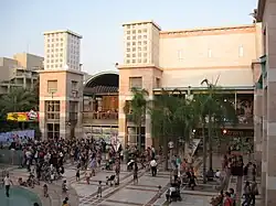Kfar Saba is located just across the Green Line from the Palestinian city of Qalqilya. During times of relative peace, residents of Kfar Saba would shop in Qalqilya: this practice ended at the start of the First Intifada in 1987. In the following years, Kfar Saba became a frequent target of Palestinian terror attacks. In April 2001, a Palestinian suicide bomber wearing an explosive belt killed a doctor and wounded 50 at a bus stop in Kfar Saba.[20] In March 2002, a Palestinian opened fire on passersby at a major intersection, killing an Israeli girl and wounding 16 before being shot dead.[21] In April 2003, a Palestinian suicide bomber blew himself up at the Kfar Saba train station during the morning rush hour, killing a security guard and wounding 10 bystanders.[22]
