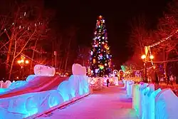 The city was the administrative center of the Far Eastern Federal District of Russia from 2002 until December 2018, when the status was given to Vladivostok.[18] As is typical of the interior of the Russian Far East, Khabarovsk has an extreme climate with strong seasonal swings resulting in strong, cold winters and relatively hot and humid summers.