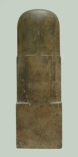 The linga is a phallic post or cylinder symbolic of the god Shiva and of creative power.[45] As a religious symbol, the function of the linga is primarily that of worship and ritual, and only secondarily that of decoration. In the Khmer empire, certain lingas were erected as symbols of the king himself, and were housed in royal temples in order to express the king's consubstantiality with Siva.[46] The lingas that survive from the Angkorean period are generally made of polished stone.