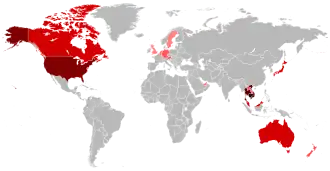 Due to migration as a result of the Cambodian Civil War and Cambodian genocide, there is a large Khmer diaspora residing in the United States, Canada, Australia, and France.