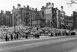 During World War II, almost every building on Khreshchatyk was laid with explosives by the retreating Red Army troops. On 24 September 1941, five days after German troops had occupied the city,[12] radio-controlled explosions were set off from over 400 kilometres (250 mi) away. The demolition of Khreshchatyk became the first operation in history where the long-distance radio-controlled explosions were used for military purposes. This unprecedented method of warfare caused panic and brought heavy casualties among both the occupiers and city's remaining civilian population.