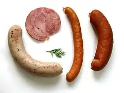Kiełbasa krakowska, also called "Krakauer", which originated in the city of Kraków
