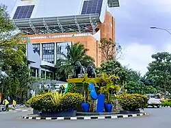 To the south west of the CBD, and also on the Nyarugenge Hill, is the suburb of Nyamirambo.[98] This was the second part of the city to be settled, being built in the 1920s by the Belgian colonial government as a home for civil servants and Swahili traders. The latter group were mostly members of the Islamic faith, which led to Nyamirambo being known as the "Muslim Quarter".[99] Nyamirambo's Green Mosque (Masjid al-Fatah) is the oldest mosque in Kigali, dating to the 1930s. Travel publisher Rough Guides described Nyamirambo in 2015 as "Kigali's coolest neighbourhood", citing its multi-cultural status and an active nightlife, which is not found in much of the rest of the city.[100] North of Nyamirambo, and west of the CBD is Nyabugogo. Situated at the lowest part of the city, in the valley of the eponymous Nyabugogo River, Nyabugogo is home to Kigali's principal bus and share taxi station, with vehicles departing for numerous domestic and international destinations.[101]