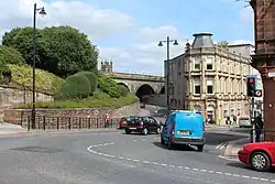 A comparatively modest settlement until the Industrial Revolution, Kilmarnock extended considerably from around 1800 onwards, requiring the opening of King Street, Portland Street, and Wellington Street.[32] Added later was John Finnie Street, which is regarded as "one of the finest Victorian planned streets in Scotland."[33] The Sandbed Street Bridge is the oldest known surviving bridge in the area.[34]