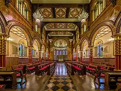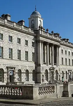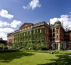 The Strand Campus is the original campus of King's. The campus is based around the Grade I listed original King's Building constructed for the college in 1831, designed by Sir Robert Smirke, adjacent to Somerset House and sharing its frontage along the River Thames, including the King's College London Chapel, redesigned in 1864 by Sir George Gilbert Scott.[69] The campus also includes buildings along the adjacent Surrey Street, the Strand Building and the east wing of Somerset House. Beyond this contiguous complex of buildings, the campus also includes Bush House on the opposite side of the Strand, the Maughan Library and etc.venues on Chancery Lane.[70] The nearby Virginia Woolf Building was also part of the Strand Campus area until the lease expired in autumn 2025.[71]