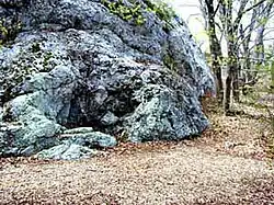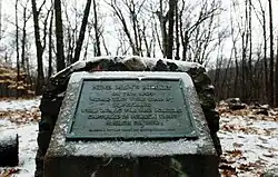 Wheeler's Surprise and the ensuing Siege of Brookfield were fought in August 1675, between Nipmucs under Muttawmp and the colonists of Massachusetts Bay under the command of Thomas Wheeler and Captain Edward Hutchinson.[40] The battle consisted of an initial ambush on August 2, 1675 by the Nipmucs against Wheeler's unsuspecting party. Eight men from Wheeler's company died during the ambush: Zechariah Phillips of Boston, Timothy Farlow of Billerica, Edward Coleborn of Chelmsford, Samuel Smedly of Concord, Shadrach Hapgood of Sudbury, Sergeant Eyres, Sergeant Prichard, and Corporal Coy of Brookfield.[41] Following the ambush was an attack on Brookfield, Massachusetts, and the consequent besieging of the remains of the colonial force. The Nipmucs harried the settlers for two days, until they were driven off by a newly arrived force of colonial soldiers under the command of Major Simon Willard.[42] The siege took place at Ayers' Garrison in West Brookfield, but the location of the initial ambush was a subject of extensive controversy among historians in the late nineteenth century.[40]