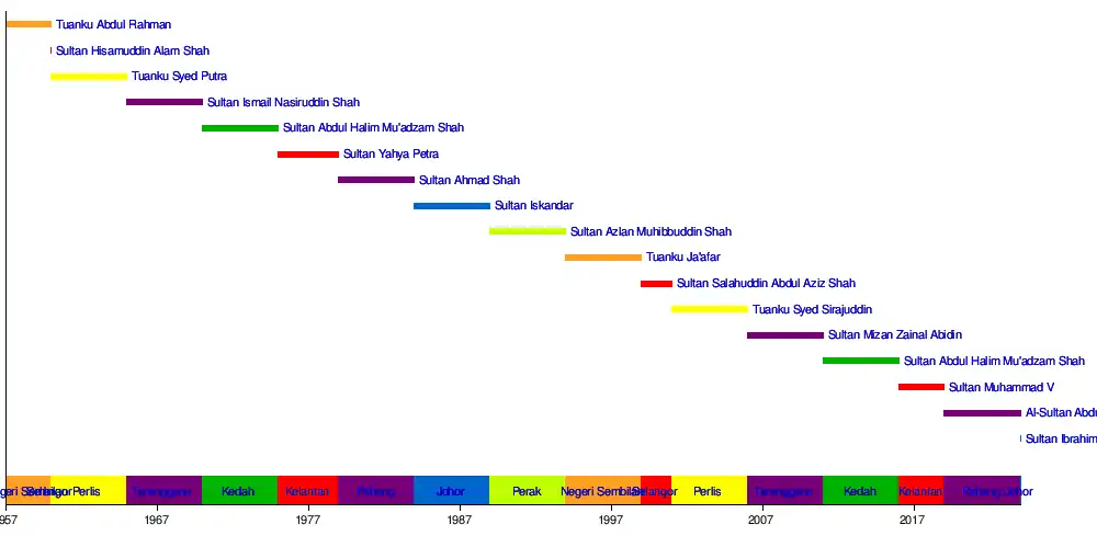 The following rulers have served as the Yang di-Pertuan Agong:[19]