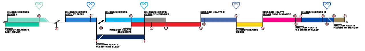 - Kingdom Hearts χ: At Tokyo Game Show 2012, Square Enix announced Kingdom Hearts χ, previously known as Kingdom Hearts for PC Browsers.[21] It is a browser game for PCs, and was only playable in Japan from July 2013 to September 2016. It features cartoon-like 2D models and is a prequel to the series, detailing the events leading up to the Keyblade War.
