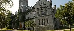 Regiopolis College (for training priests) was incorporated in March 1837, and in 1866 the college was given full degree-granting powers, although these were rarely used and the college closed in 1869.[23] The building became the Hotel Dieu Hospital in 1892. The college reopened at another location in 1896.[38] Queen's University, originally Queen's College,[23] one of the first liberal arts universities, first held classes in March 1842; established by the Presbyterian Church, it later became a national institution.[39] The Royal Military College of Canada (RMC) was founded in 1876.