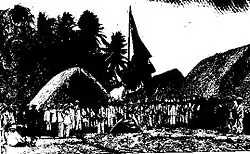 The passing trade gave rise to European, Indian, Chinese, Samoan, and other residents from the 1830s; they included beachcombers, castaways,[61][62][63][64] traders, and missionaries. Dr Hiram Bingham II of the American Board of Commissioners for Foreign Missions (ABCFM) arrived on Abaiang in 1857. The Roman Catholic faith was introduced on Nonouti around 1880 by 2 Gilbert islanders, Betero and Tiroi, who had become Christians in Tahiti. Father Joseph Leray, Father Edward Bontemps and Brother Conrad Weber, Roman Catholic Missionaries of the Sacred Heart arrived on Nonouti in 1888.[65] The Protestant missionaries of the London Missionary Society (LMS) were also active in the southern Gilberts. On 15 October 1870, Rev. Samuel James Whitmee of the LMS arrived at Arorae, and later that month he visited Tamana, Onotoa and Beru.[66] In August 1872, George Pratt of the LMS visited the islands.[67]