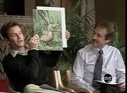 Cameron and Comfort participated in a televised debate with atheists Brian Sapient and Kelly O'Conner of the Rational Response Squad, at Calvary Baptist Church, in Manhattan, on May 5, 2007. It was moderated by ABC's Martin Bashir and parts of it were aired on Nightline. At issue was the existence of God, which Comfort stated at various times during his ministry that he could prove scientifically without relying on faith or the Bible. However, he never committed to this restriction for the debate, itself, as later clarified by The Christian Post in a correction they made at the very end of their article about the debate.[74] The audience was composed of both theists and atheists. Points of discussion included atheism and evolution.[75] While Sapient contended during his arguments that Comfort violated the rules by talking about the Ten Commandments, Cameron later stated on The Way of the Master Radio that the rules of the debate did not say that the Bible could never be referenced, but rather that Comfort simply had to come up with one argument that did not reference the Bible or faith.[76] During the debate, Cameron referred to the absence of a crocoduck to dispute the theory of evolution, which then became a meme to highlight misconceptions about the theory.[77]