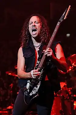 Kirk Lee Hammett (born November 18, 1962)[1] is an American musician. Hammett has been the lead guitarist of heavy metal band Metallica since 1983; prior to joining Metallica, he co-formed thrash metal band Exodus in 1979. In 2023, Hammett and Metallica bandmate James Hetfield were co-ranked 23rd on Rolling Stone's list of Greatest Guitarists of All Time.[2] In 2009, Hammett was ranked number 15 in Joel McIver's book The 100 Greatest Metal Guitarists.[3][4][5]