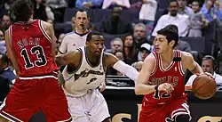 Hinrich was drafted by the Chicago Bulls with the seventh pick in the 2003 NBA Draft, where he earned the nickname "Captain Kirk".[4] He was the Bulls' all-time leader in three-point field goals until November 2024 when this was surpassed by Zach LaVine.[5] After seven seasons with the Bulls, he had short stints with the Washington Wizards and Atlanta Hawks before returning to the club in 2012. In 2016, he was traded back to the Atlanta Hawks.