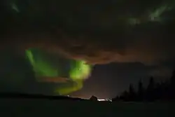 The coldest confirmed temperature ever in Kiruna was recorded at the nearby weather station with −43.3 °C (−45.9 °F) recorded in January 1999.[46] The weather station recorded 31.6 °C (88.9 °F) in July 1945, which is the all-time record.[47] The warmest month on record at the weather station was July 2018, with average high temperatures of 24.3 °C (75.7 °F).[48] Kiruna has a gloomy climate, affected by Atlantic low-pressure systems. Due to its extreme daylight cycle, the period between April and August account for 73% of Kiruna's annual sunshine according to the 1961-1990 normals, whereas the five darkest months between October and February contain only around 10% of the annual sunshine.