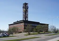 In June 2010, the municipal council decided that the town would be moved eastwards (to 67°51′1″N 20°18′2″E / 67.85028°N 20.30056°E), in the direction of Tuolluvaara, instead of the proposed northwestern location.[35] The moving of the town was started in 2014, and the plan describes a process that continues to 2100.[36] In the years 2012-2013, an international architectural competition concerning the vision, strategy, and design of a new city centre for a new Kiruna was arranged by the Municipality of Kiruna in partnership with the Swedish Association of Architects. White Arkitekter AB, based in Gothenburg, together with Ghilardi + Hellsten Arkitekter, based in Oslo, Spacescape AB, Vectura Consulting AB, and Evidens BLW AB, won the competition with their masterplan and strategy for moving the city. The competition team was led by White Arkitekter AB, lead architect Mikael Stenqvist, SAR/MSA, in collaboration with Ghilardi + Hellsten Arkitekter, lead architect Ellen Hellsten.[37] Together with researchers from Luleå and Delft universities, it envisages a denser city centre with a greater focus on sustainability, green and blue infrastructure, pedestrians, and public transport rather than automobiles.[38] In 2018, the Swedish government announced that it would help arrange replacement work for radio corporation Radiotjänst after the city had been moved from its original location.[39]